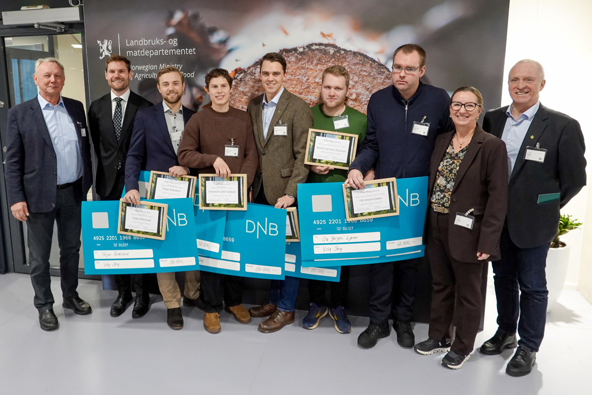 Dyktige skogstudenter fikk priser på landbruksministerens kontor.