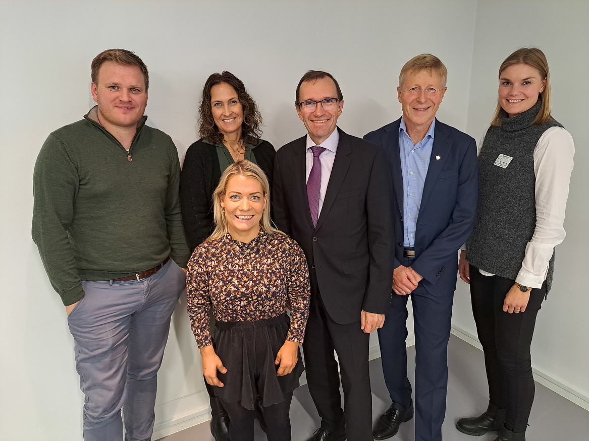 Fra mandagens møte med regjeringen om EUs klimaregelverk. Fra venstre: Aleksander Øren Heen, statssekretær i KLD, Wenche Westberg statssekretær i LMD, Sandra Borch, landbruks- og matminister, Espen Barth Eide, klima- og miljøminister, Per Skorge, administrerende direktør i Norges Skogeierforbund og Ida Aarø, rådgiver i Norges Skogeierforbund.