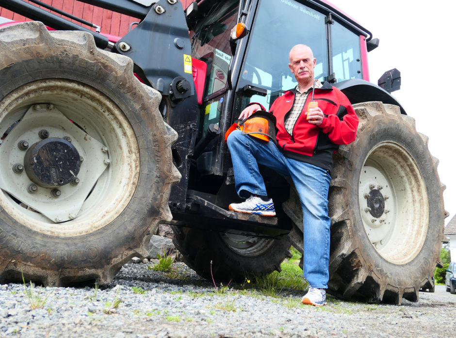 Det gjorde ikke vondt heller, men han slet med å komme opp i traktoren for å kjøre de to kilometerne hjem.